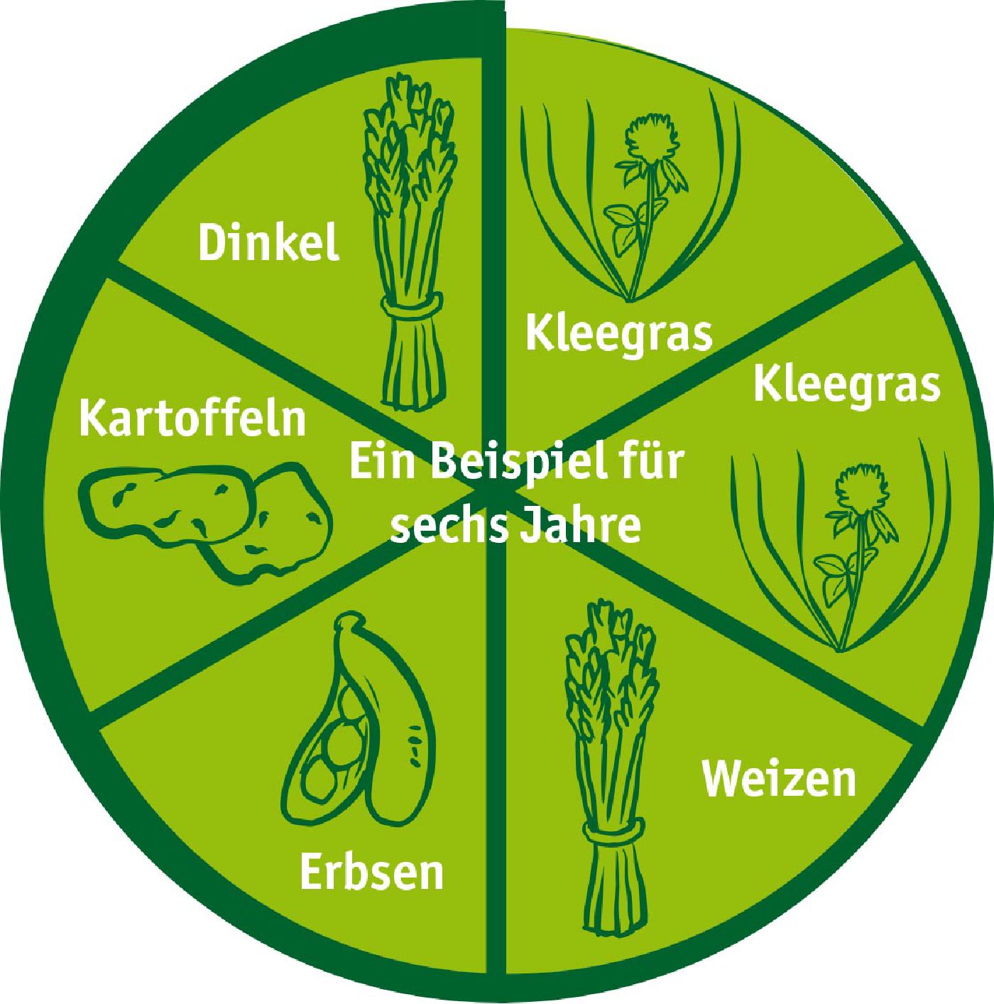 "Fruchtfolge So nennt man die Abfolge der Pflanzen, die auf ein und demselben Feld hintereinander angebaut werden. Zum Beispiel werden in einem Jahr Blattfrüchte, wie Rüben und im darauffolgenden Jahr Halmfrüchte, wie Getreide, angebaut. Würde man jedes Jahr die gleiche Frucht aussäen, käme es zu sogenannten Fruchtfolgeschäden wie eine starke Vermehrung von Krankheitserregern und Schädlingen. Durch ausgeklügelte Fruchtfolgen werden die Nährstoffe im Boden gut ausgenutzt, Unkraut unterdrückt und Schädlinge an einer Massenvermehrung gehindert."